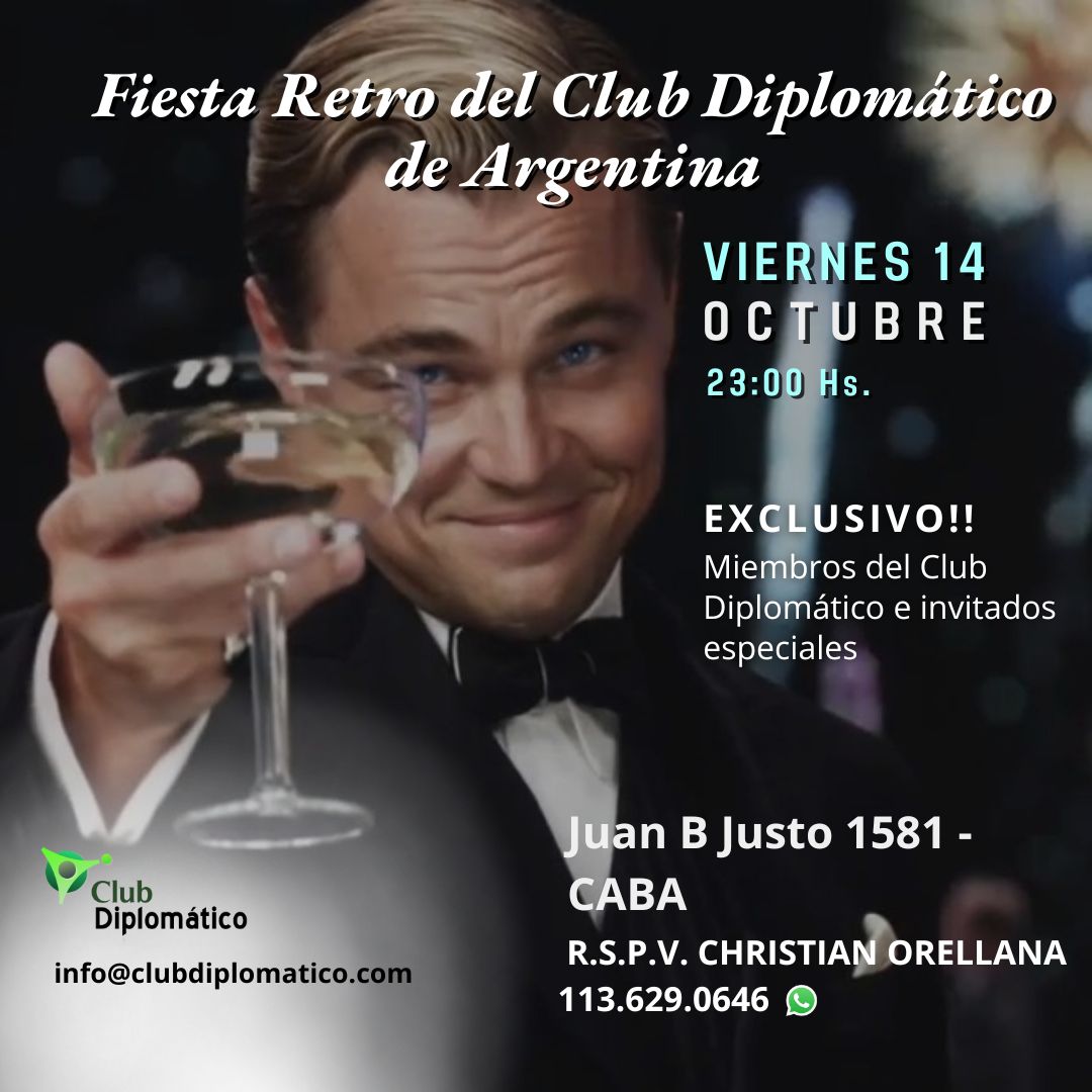 Fiesta Retro Por Christian29 septiembre, 202213 octubre, 2022Eventos Fiesta Retro del Club Diplomático de Argentina Juan B Justo 1581 CABA VIERNES 14 DE OCTUBRE