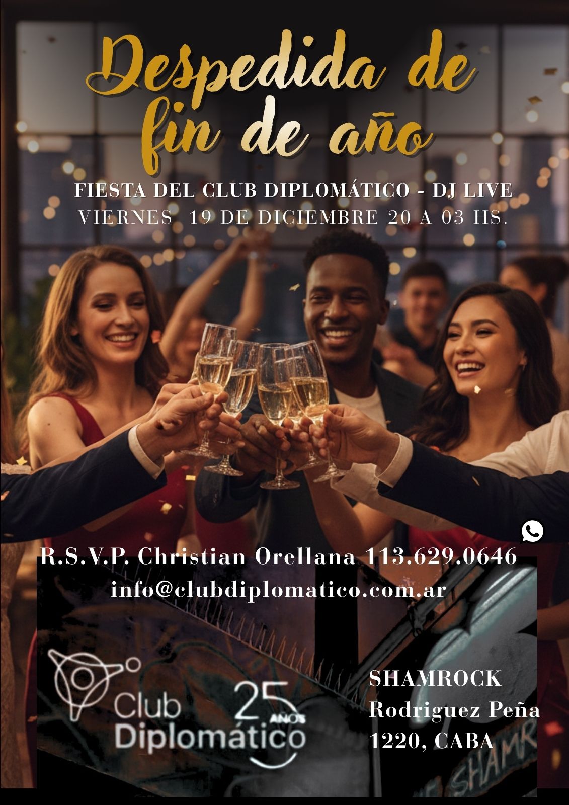 FIESTA DEL CLUB DIPLOMÁTICO – DJ LIVE VIERNES 19 de Diciembre 20 A 03 hs. SHAMROCK Rodriguez Peña 1220, CABA