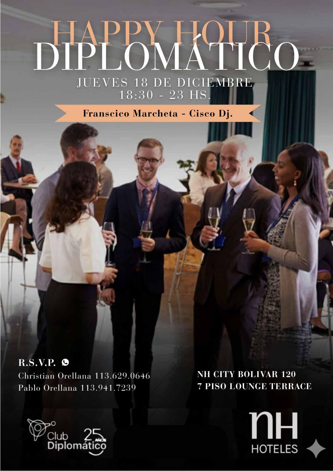Jueves 18 de Diciembre de 18:30 a 23 hs. Franscico Marcheta Cisco DJ NH CITY BOLIVAR 1207 PISO LOUNGE TERRACE
